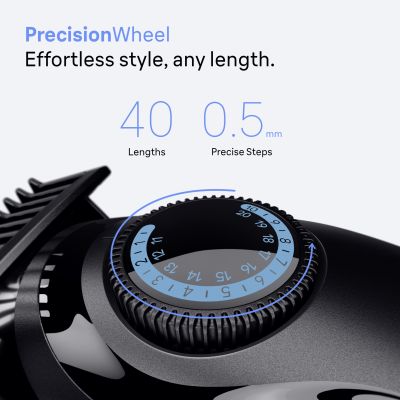 • Effortless style control: Stay in full control with every trim thanks to PrecisionWheel and 40 length settings in steps of 0.5 mm