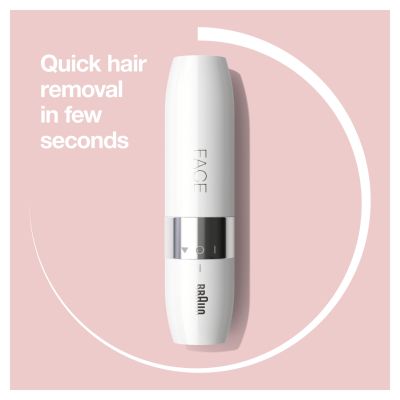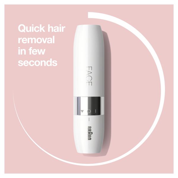 An elegantly designed, mini-sized electric facial hair remover for women, delivering fast and gentle hair removal results. The Braun Mini Hair Remover cuts hair close to skin level, leaving your face smooth, consistent and free of peach fuzz. Quick and gentle hair removal: whenever, wherever.Box includes: 1 X Mini Hair Remover 1 X White Cap 1 X Cleaning Brush 1 X AA Battery