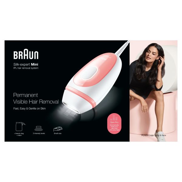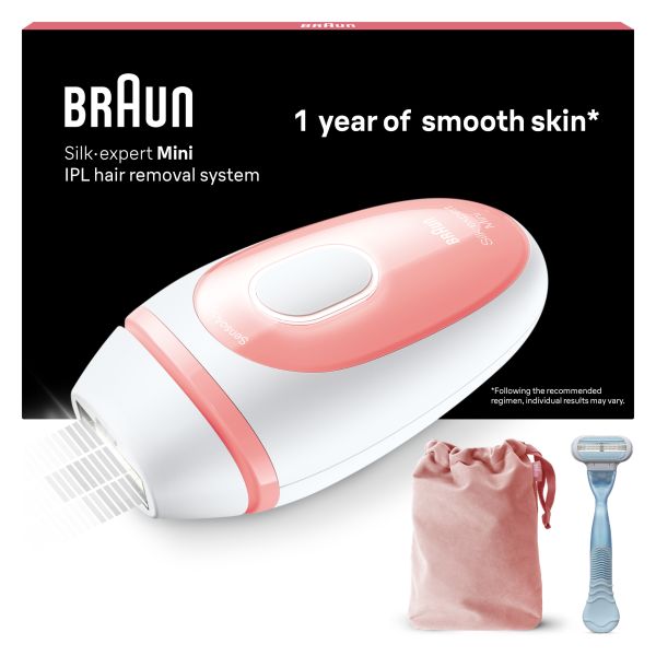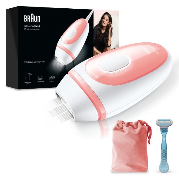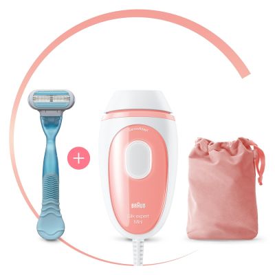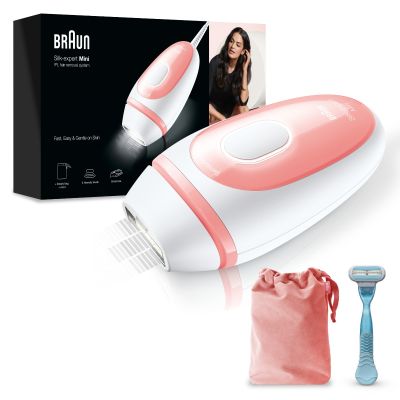 Braun Silkᄋexpert Mini is a fast, easy and gentle IPL hair removal system for women. Up to 1 year of smooth skin with visible results in just 3 uses (following the regimen. Individual results may vary). Ridiculously easy to use. Skin-Protection LITE sensor ensures an ultra gentle treatment. Reads your skin tones. Auto-adapts the power of every flash. Compact design for easy handling. Travel pouch for on-the-go. Box includes: 1x Silkᄋexpert Mini IPL 1x travel pouch 1x Venus razor