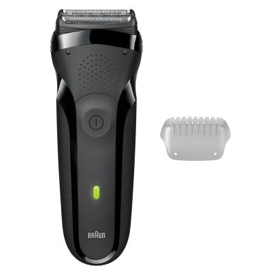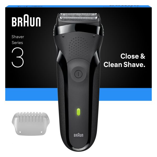 The Braun Series 3 rechargeable electric razor is efficient in one stroke and gentle on skin. The three pressure sensitive shaving elements adapt perfectly to every facial contour and shave in intuitive straight lines. Designed and engineered in Germany, the Braun Series 3 razors for men are built to last. *Packaging may vary Box includes: 1 x Electric shaver 1 x Protective cap 1 x SmartPlug