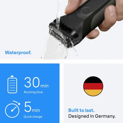 • Rechargeable long-life NiMH batteries. Full charge in 1 hour for 30 min trimming and shaving