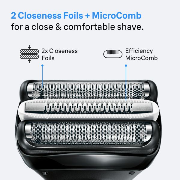 • Close and clean shave: 2 closeness foils and central trimmer provides a close and clean shave