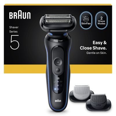 Braun Series 5 electric shaver offers an easy and fast shave. The 3 Flex blades adapt to comfortably follow the contours of your face. 2 shave modes: Turbo Mode and Standard Mode, allow you to personalize your shave to your needs. With a Li-Ion battery offering up to 50-min of cordless runtime and 5-min quick charge. The Series 5 electric razor for men is 100% waterproof. Made in Germany. Box content: 1x Braun Series 5 shaver, 1x travel case, 1x charger, 1x cleaning brush, 1x cleaning brush, 1x Body Groomer attachment, 1x Beard Trimmer attachment