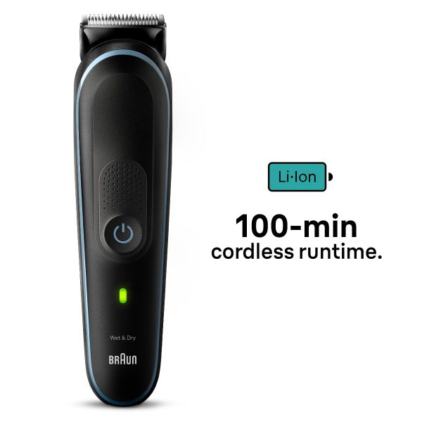 Groom from head to toe using the Braun All-In-One Style Kit Series 5. 9-in-1 grooming kit made for beard, hair, details and more. With ultra sharp blades, sensitive comb and a 100-minute runtime.
