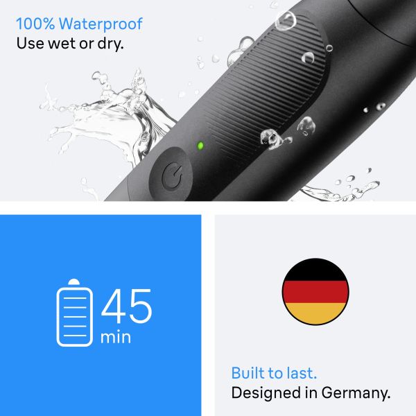 • Built to last: 100% waterproof with rubberized non-slip handle, has a cordless 45-minute runtime.