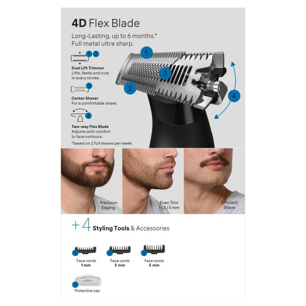 • Fast, & efficient: 4D-blade now has 2x wider cutting area and makes 450 movements per second for fast grooming. Stainless steel blade stays sharp for up to 6 months