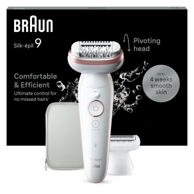 The Braun Silk-�pil 9 ensures up to 1 month of smooth skin, anytime and comfortably. Featuring a wide pivoting head, this Wet & Dry epilator effortlessly follows your contours. This cordless Braun epilator is equipped with 40 MicroGrip tweezers, capable of capturing hairs as short as 0.5mm, ensuring long-lasting smooth skin. Enjoy salon-smooth skin with ultimate control thanks to the comfortable precision handle. Say goodbye to the inconvenience of waiting for hair to regrow, as required by other hair removal products such as wax. This epilator is designed for convenience and eliminates the need for clean-ups or appointments. Tip: for reduced pain sensation, epilate in the bath or shower under warm water. Built to last years: our epilators are made in Germany.