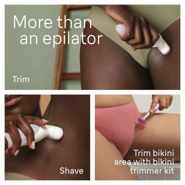• More than an epilator: includes bikini trimmer, lady shaver head and trimmer comb for sensitive areas.