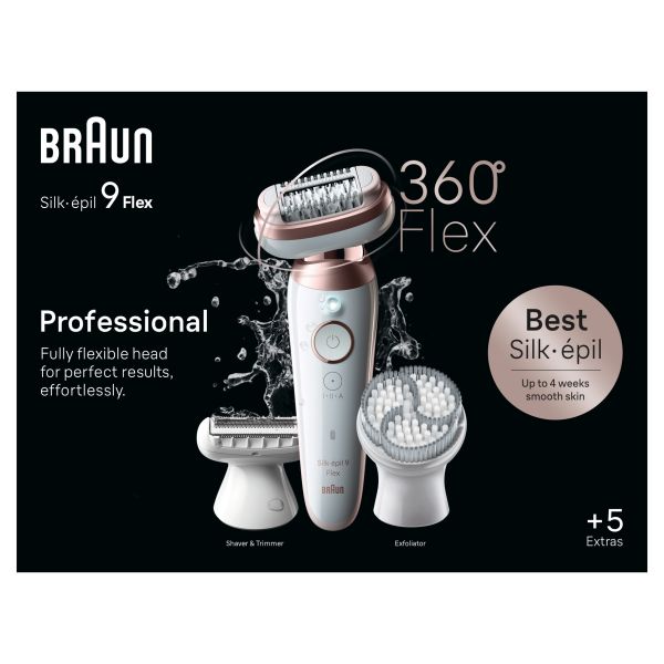 Introducing the Braun Silk-�pil 9 Flex 9 3D - the ultimate solution for long-lasting hair removal. Achieve salon-quality results from the comfort of your own home. Experience silky-smooth skin with the fully flexible head with ease, even in tricky areas like knees and underarms. It adapts to your contours, making hair removal effortless. With 40 MicroGrip tweezers, this cordless hair remover captures even the finest hairs (0.5mm), so you can say goodbye to waiting for hair to regrow. Its wide head covers a large area for hair-free skin in a few strokes. Epilate in the bath or shower to limit pain perception. Get the perfect grip even when wet with its precision handle. Say hello to smooth skin without the hassle of appointments or clean-ups. Built to last years: our epilators are made in Germany.