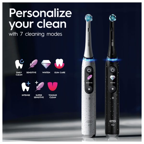 The iO 10 electric toothbrush with the revolutionary iO Sense smart charger personalises your brushing with real-time feedback,uiding you for perfect coverage, brushing time and brushing pressure for a delightfully effortless clean. It combinesentle micro-vibrations with a unique dentist-inspired round brush head for the feel of a professional purifying clean every day. Replace your Oral-B iO toothbrush head every 3 months for the best results.<\p>