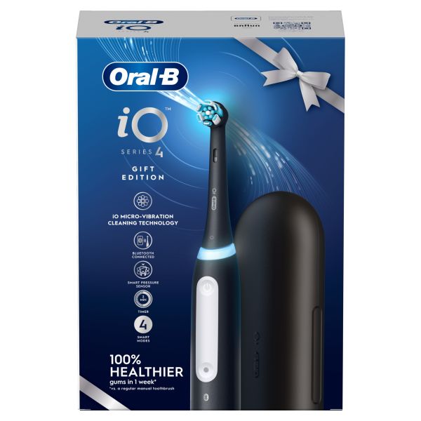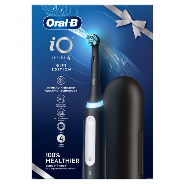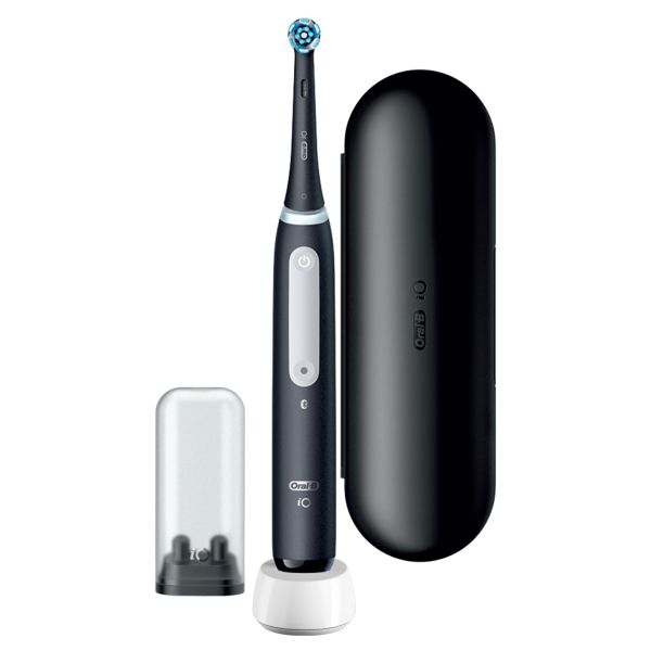The iO 4 electric toothbrush features Oral-B's best technology, combining a dentist-inspired round brush head with micro-vibrating bristles for a professional purifying clean feel at home. The Smart Pressure Sensor helps prevent you from brushing either too hard or too softly to better protect yourums.umuard alerts you to time spent brushing with too much pressure. Replace your Oral-B iO toothbrush head every 3 months for the best results.<\p>